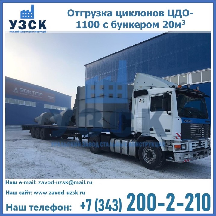 Циклоны ЦДО-1100 с бункером на 20 кубов были отгружены в декабре 2018 года в г. Новосибирск Ессентуки.