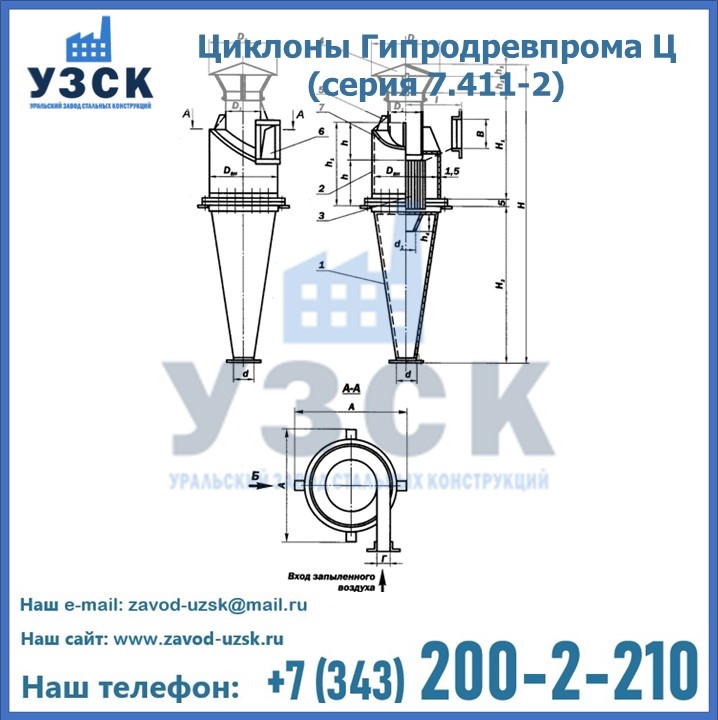 Циклоны Гипродревпрома Ц (серия 7.411-2) высокого качества можно купить в компании «УЗСК» в Ессентуках. Наши специалисты предоставят всю необходимую информацию информацию и помогут с выбором модели циклона. Подробные технические характеристики, конструкцию, параметры, ассортимент и стоимость продукции можно также найти на сайте УЗСК.