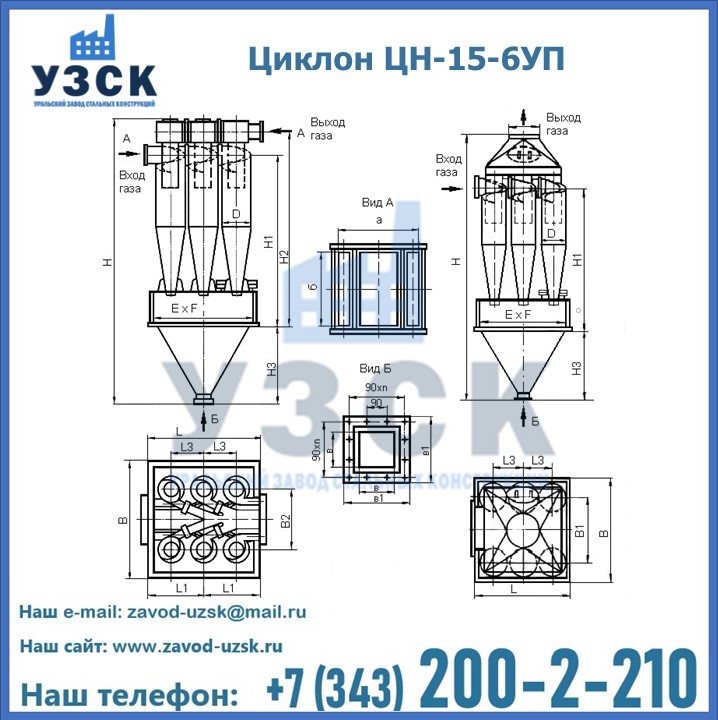 Завод «УЗСК» в Ессентуках предлагает большой выбор циклонов ЦН-15-800×6УП и прочих устройств, полностью укомплектованных и готовых к эксплуатации. Мы гарантируем соответствие оборудования всем требованиям ГОСТ и ТУ, износостойкость и высокую производительность предлагаемого оборудования. Уральский Завод Стальных Конструкций изготавливает и продает надежное, эффективное и производительное оборудование, имеющее длительную гарантию и большой эксплуатационный ресурс. Если требуется изготовить циклон нестандартных размеров, то такой вариант выполнения заказа тоже предусмотрен, так как предприятие имеет собственные производственные площади и надежных поставщиков. На все поставляемое или производимое оборудование имеются чертежи и прочая техническая документация. Заказать и купить циклоны или прочее оборудование высокого качества и по доступной цене можно через наш сайт или по указанному в разделе «Контакты» телефону.