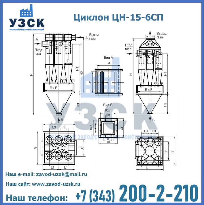 Завод «УЗСК» в Ессентуках предлагает большой выбор циклонов ЦН-15-900×6СП и прочих устройств, полностью укомплектованных и готовых к эксплуатации. Мы гарантируем соответствие оборудования всем требованиям ГОСТ и ТУ, износостойкость и высокую производительность предлагаемого оборудования. Уральский Завод Стальных Конструкций изготавливает и продает надежное, эффективное и производительное оборудование, имеющее длительную гарантию и большой эксплуатационный ресурс. Если требуется изготовить циклон нестандартных размеров, то такой вариант выполнения заказа тоже предусмотрен, так как предприятие имеет собственные производственные площади и надежных поставщиков. На все поставляемое или производимое оборудование имеются чертежи и прочая техническая документация. Заказать и купить циклоны или прочее оборудование высокого качества и по доступной цене можно через наш сайт или по указанному в разделе «Контакты» телефону.