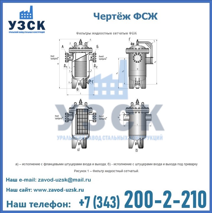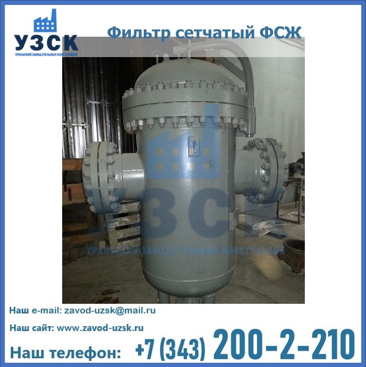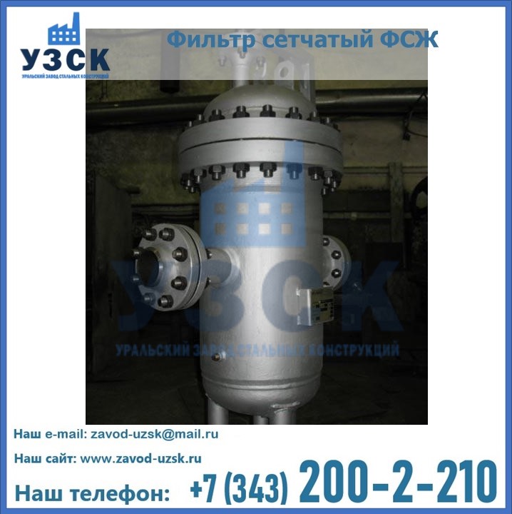 Очистку перекачиваемых жидкостей на предприятиях нефтяной, пищевой, горнорудной, фармацевтической и других отраслей промышленности эффективно выполнять с помощью жидкостного сетчатого фильтра — емкостное оборудование цилиндрической формы со съемной крышкой и элементом фильтрации внутри. Оснащенные им всасывающие линии насосных станций и установок защищены от проникновения твердых частиц в функциональные узлы гидравлической системы. Оборудование служит для перекачивания токсичных, агрессивных и иных эмульсий, суспензий, жидкостей. Купить фильтр сетчатый жидкостный ФСЖ в Ессентуках с гарантией производителя предлагает «Уральский завод стальных конструкций». Мы выполняем проектирование и изготовление ФСЖ по индивидуальным требованиям (климатическая зона, транспортируемая жидкость).