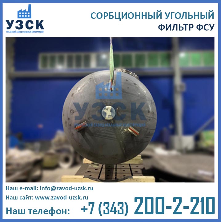 Качественную работу отопительных и промышленных котельных, линий по очистке конденсата и природных вод, электростанций обеспечивает фильтр сорбционный угольный типа ФСУ — вертикальный сосуд с одной камерой цилиндрической формы. Основное назначение оборудования состоит в глубокой очистке возвращаемого с производства конденсата от запахов, органических загрязнений и привкусов. Использование ФСУ в системах водоподготовки гарантирует очищение субстанции от масел, органических примесей, остатков нефтепродуктов до нормального значения — 0.52-1.0 мг/л. Купить в Ессентуках угольные фильтры предлагает наш Уральский завод стальных конструкций. Мы выполняем производство ФСУ под нужды предприятия, возможно изготовление сорбционных фильтров ФСУ из нержавеющей стали включая корпус и внутренние устройства.