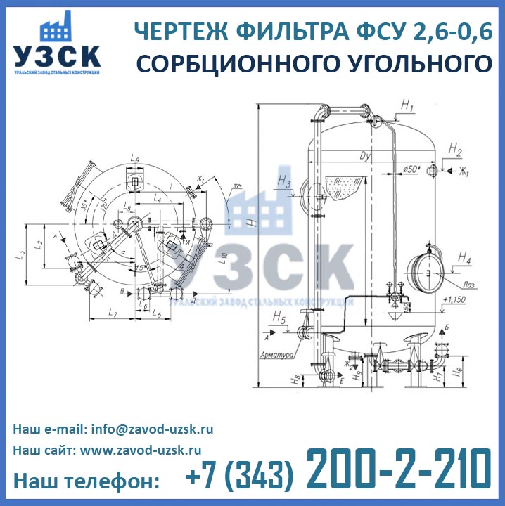 Для этого отправьте запрос в отдел продаж Уральского завода стальных конструкций (производитель фильтров ФСУ-2,6-0,6) по координатам, указанным в разделе «Контакты». В запросе необходимо указать маркировку фильтра, количество, необходимую комплектацию (с обвязкой или без) и регион доставки оборудования. В ответ Вы получите счет или коммерческое предложение, содержащие актуальную стоимость фильтра ФСУ, наличие или сроки изготовления, условия оплаты и доставки в Ваш населенный пункт.