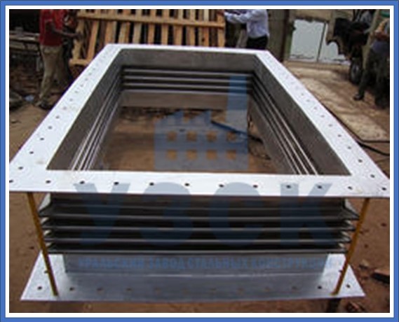 Прямоугольные линзовые компенсаторы используются в газотурбинном оборудовании, в химической и нефтяной отрасли. Работают изделия при температуре 400-600 0 С, максимальный размер прямоугольного короба 7500*10000 мм. Могут иметь фланцевое и сварное соединение с трубой.