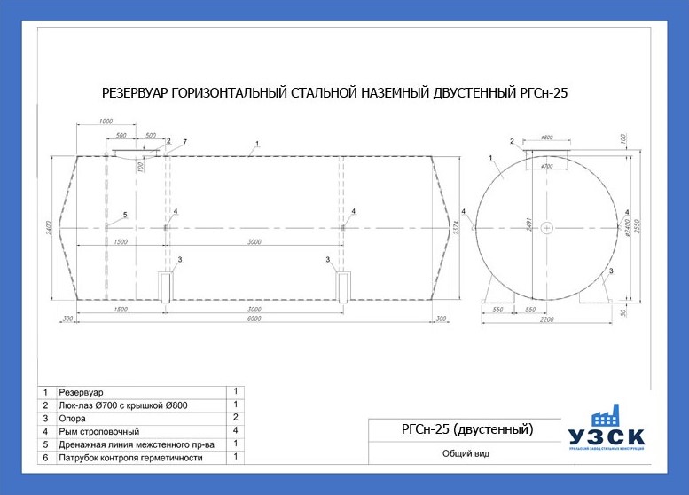 РГСДн-25: горизонтальный резервуар двустенный наземного расположения;
